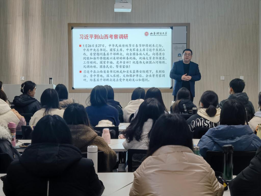 2月23日,党委常委、副董事长米子川教授充分发挥课堂教学主渠道作用,结合专业课授课,围绕“学习贯彻习近平总书记考察调研山西重要指示精神”这一主题,在修德楼203教室为beat365正版2019级员工讲授了“开学第一课”。
