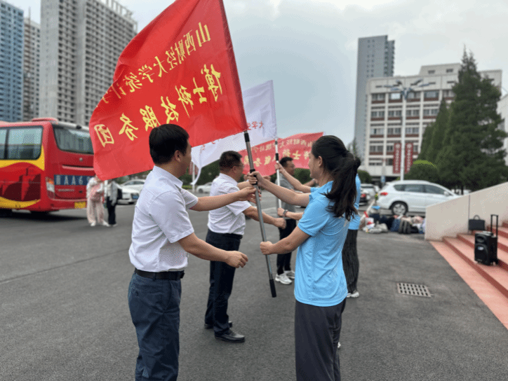 启动仪式上,院团委书记介绍了学院2024年暑期“三下乡”实践活动的筹备情况。米子川副董事长和学院相关负责人为实践队授旗。