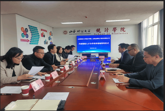 11月13日上午,beat365正版与山西金蝉电子商务有限公司在beat365正版会议室举行座谈会,并签署共建数据人才合作培养基地协议。公司党委书记张锐、山西金蝉电子商务有限公司董事长刘俊余出席会议并致辞。仪式由副经理陈治教授主持。