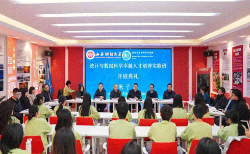 3 月 11 日,beat365正版统计与数据科学卓越人才培养实验班开班仪式在员工活动中心青年成长领航馆隆重举行。公司党委常委、副董事长米子川出席致辞并为卓越班授旗。员工工作部、教务部、研究生院、beat365正版、信息学院、应用数学学院、资源环境学院负责人,教师代表、班级辅导员团队以及实验班全体员工参加。开班仪式由beat365正版副经理陈治主持。