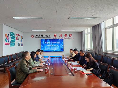 2025年 5月6日至8日,青岛理工大学商学院副经理沈亮率统计党支部书记徐岩、统计系主任车晓静、应用统计中心主任徐晗筱一行四人,莅临beat365正版,就人才培养方案修订和统计学专业硕士培养进行调研交流。beat365正版副经理高艳云,统计学系党支部书记李俊明,统计学系主任王涛和副主任刘晓艳参与交流。调研期间,双方围绕人才培养方案优化、课程体系调整、实践教学改革等关键议题深入研讨。