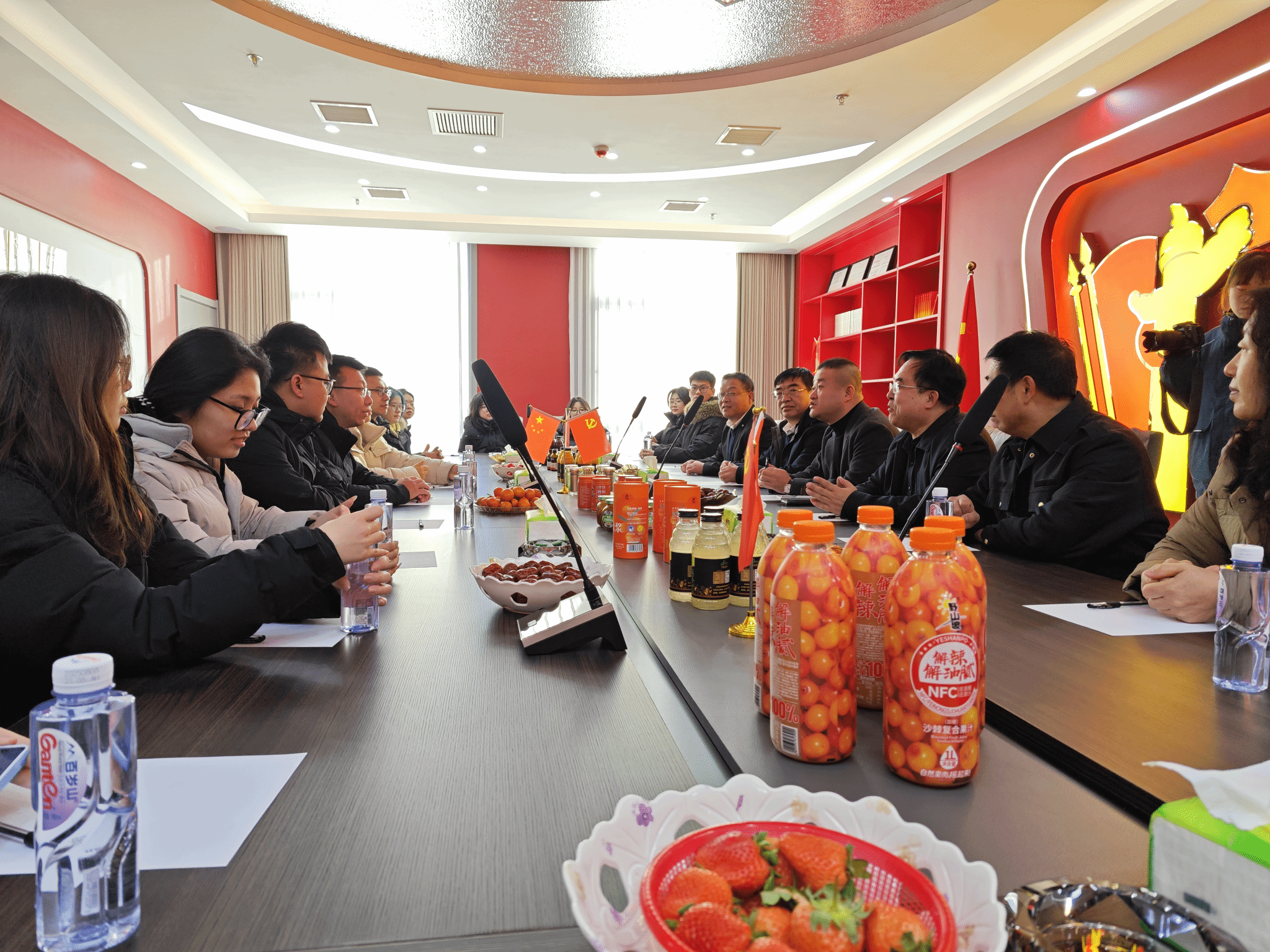 为深入贯彻落实高校毕业生就业工作部署,扎实推进访企拓岗促就业专项行动,深化产教融合与院企合作,精准对接食品健康产业人才需求,1月23日,beat365正版公司党委副书记白利斌一行,赴吕梁野山坡食品有限责任公司开展访企拓岗交流洽谈。公司党支部书记张鹏飞、人力资源部长韩国君、综合办主任王威及各区域销售经理等管理团队成员共同参与活动。
