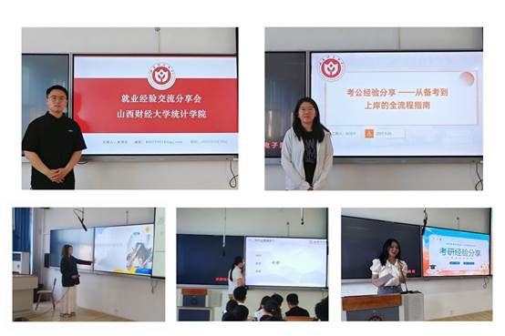 分享会上,入职招商银行太原分行的田博洋同学深入剖析求职底层逻辑,强调统计专业员工制作简历时应突出项目经历,同时建议通过企业官网、校内就业平台等多渠道收集信息,充分把握就业机会。成功上岸太原市尖草坪区税务局郝瑞华同学围绕科学选岗与高效备考展开,提出结合专业优势和岗位报考限制筛选职位,合理规划时间、分模块突破行测申论重难点的实用策略。
