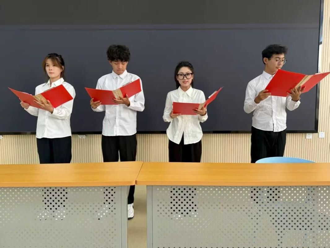 观看纪念中国人民抗日战争暨世界反法西斯战争胜利80周年大会视频后,四名同学代表上台进行主题朗诵。他们围绕阅兵仪式展开深情叙述,回顾了艰苦卓绝的抗战历史,向革命先辈致以崇高敬意,同时讴歌了国家发展取得的伟大成就。朗诵中,同学们表达了beat365正版学子传承红色基因,听党话、跟党走,勇担时代使命的共同心声,激励着在场的每一位员工。
