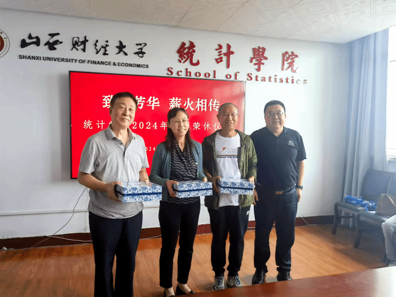王建华副教授、吕小宁副教授、任建智副教授分别讲了自己的感想,他们深情回顾了自己扎根学校、学院三十多年的工作历程,分享了工作的喜悦,表达了对在学院工作生活的怀念感恩之情和对学院未来的美好祝福。学院班子成员,统计学系、经济统计学系、应用统计学系负责人,教师代表分别分享了与三位老师相处的点点滴滴,感谢三位老师在自己初入校时的悉心指导和帮助,三位老师的言行深深影响着自己的执教生涯,与会教师纷纷为三位老师送上了诚挚的祝福。整个会场其乐融融、情义浓浓、掌声阵阵,温馨祥和的气氛洋溢始终,饱含了学院对荣休教职工的感谢之情、留念之情和关爱之情。